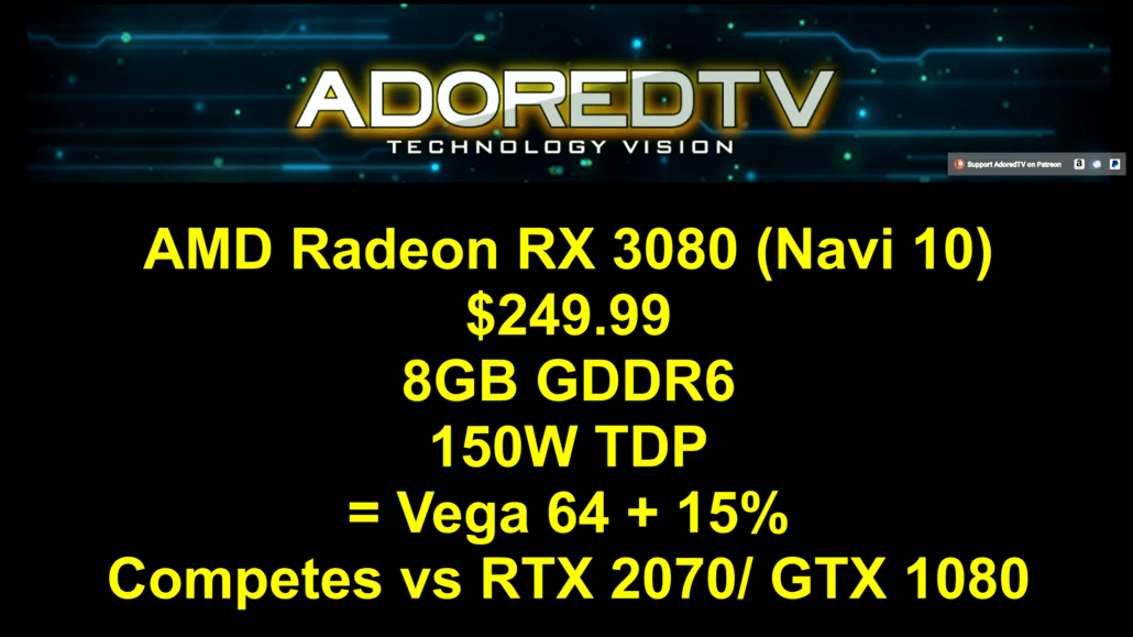 Уеб порталът WCCFTech публикува интересна информация за новото поколение карти на AMD, които най-вероятно ще бъдат представени в началото на следващата година по време на голямото изложение CES. По време на това събитие се очаква да бъдат представени първите три модела на новата серия графични карти. Най-мощната от тези три модела е видеокартата Radeon RX 3080. Тя разполага с 8 GB буферна памет тип GDDR6, като графичният процесор ще се произвежда чрез 7 нанометров технологичен процес. Устройството ще консумира не повече от 150 W. Това ще бъда графична карта от среден клас с цена $250. Изрично се казва, че RX 3080 е с около 10-15% по-производителна от RX Vega 64 и NVIDIA GTX 1080.  От малко по-нисък клас е моделът Radeon RX 3070 с цена $199. Той също ще има 8 GB буферна памет (GDDR6). Консумацията на устройството не превишава 120 W. Нейните параметри са сравними с RX Vega 56 и NVIDIA GTX 1070. Тази видеокарта е предвидена да бъде директен конкурент на GTX 2060, която още не е излязла. Тройката нови графични карти приключва с Radeon RX 3060. Тя има 6 GB буферна памет тип GDDR6. Консумацията е ниска – на ниво 75 W, а производителността ? е колкото на GTX 1060. Не е необходимо подаването на допълнително захранване, а цената е $129. |